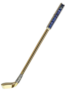 14K Yellow and White Gold Golf Club Pin with Sapphires Details