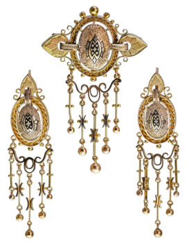 Pair of 18K Yellow Gold and Diamond Brooches Details