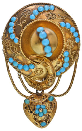 Victorian Turquoise & Gold Floating Heart Brooch Details