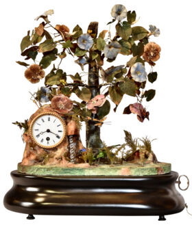 French Automaton Clock with Animated Birds Details