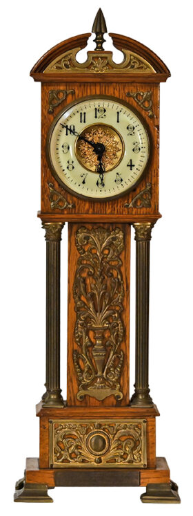 English Cathedral Skeleton Clock Under Glass Dome Details