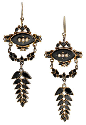 Victorian Black Onyx Dangle Earrings Details