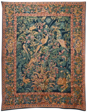 French or Belgian Jacquard Tapestry “Aristolochia Leaves with Birds” Details