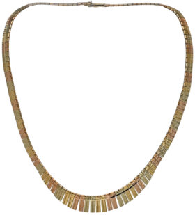 Italian 14K Tri-Color Gold Segmented Necklace Details