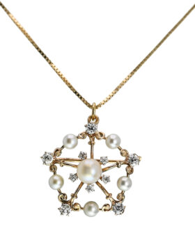 Edwardian Pearl & Old Mine Cut Diamond Starburst Pendant/Pin Details