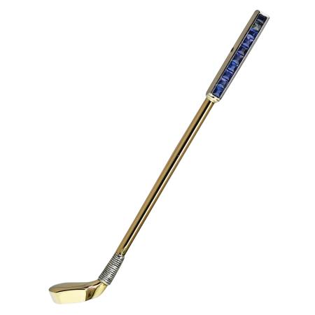 14K Yellow and White Gold Golf Club Pin with Sapphires