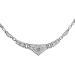 At the center rests a sparkling Old European-cut diamond, framed by two companion diamonds of the same period-cut style, adding a refined brilliance that enhances the necklace’s airy, architectural design. The filigree panels graduate gracefully toward the center, leading to a striking chevron-shaped plaque, while the articulated open-link chain continues the motif in perfect harmony.