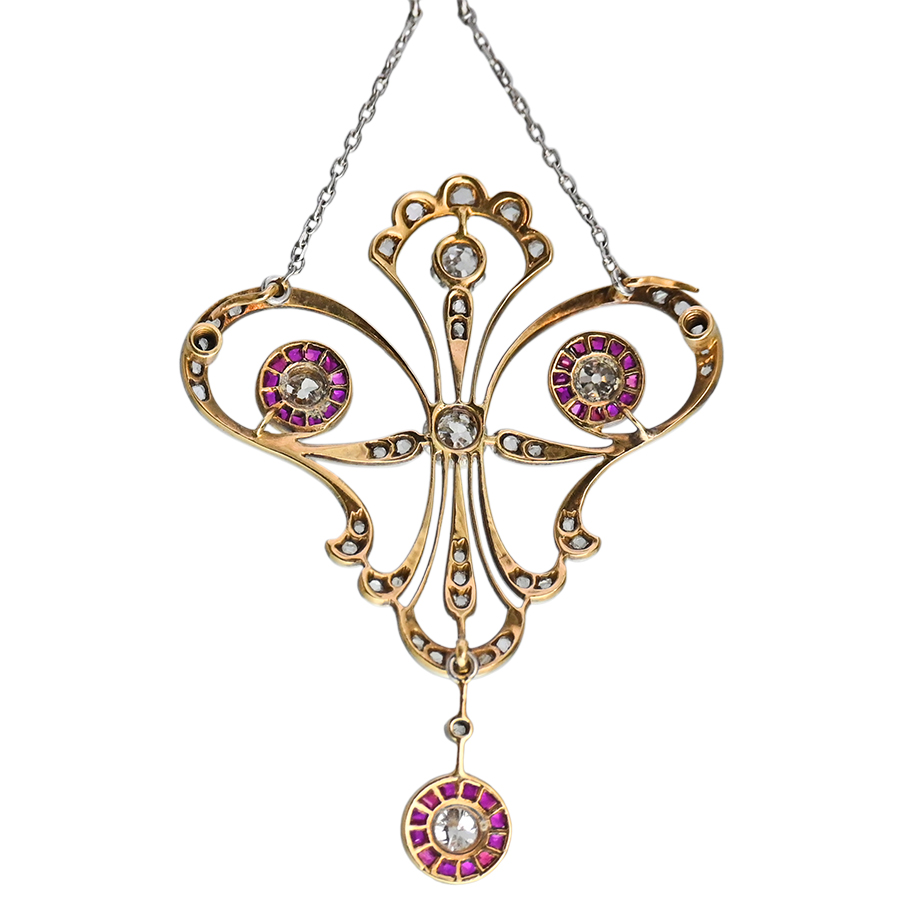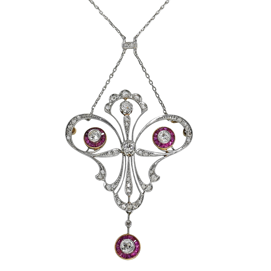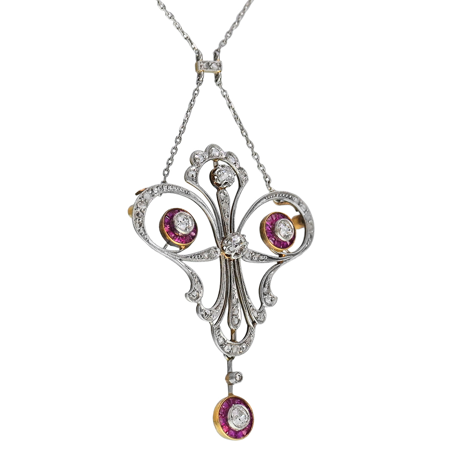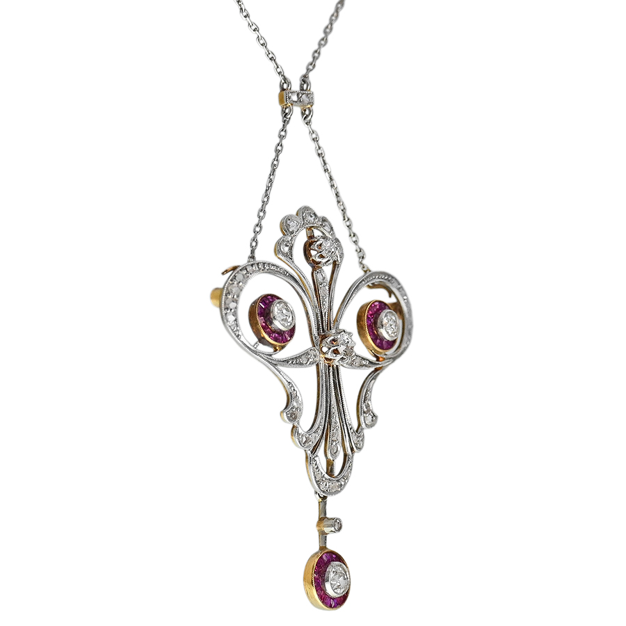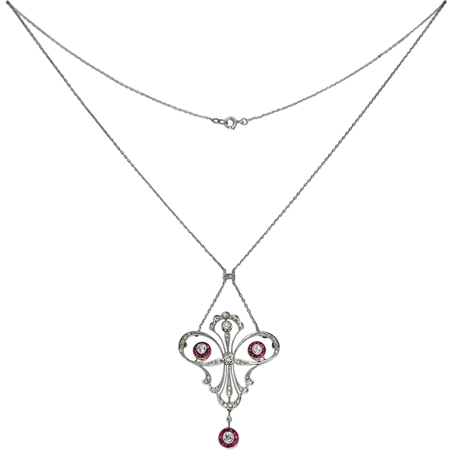 Edwardian Platinum-Topped Gold Diamond and Synthetic Ruby Lavalier