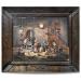 Suspended on the back wall of the scene is the timepiece itself, integrated naturally into the painted interior and framed as part of the household environment. When activated, the mechanism plays music and animates. The figures in a harmonious sequence, transforming the painted surface into a living vignette. The painting is housed in its original carved wooden frame, emphasizing the rustic, architectural character of the scene.