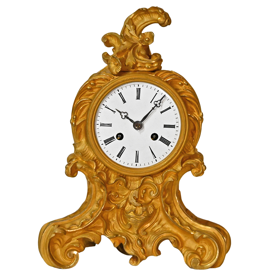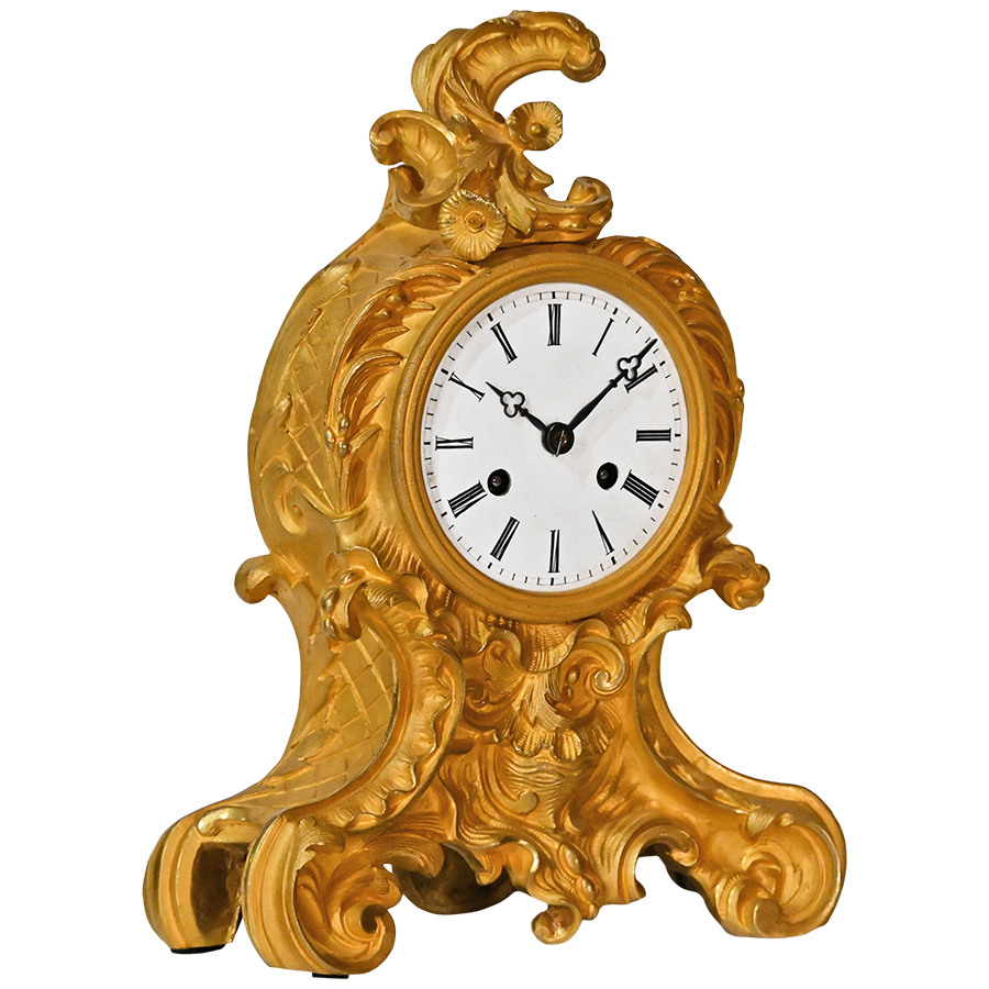 French Rococo Mantel Clock with Original Mercury Fire Gilding