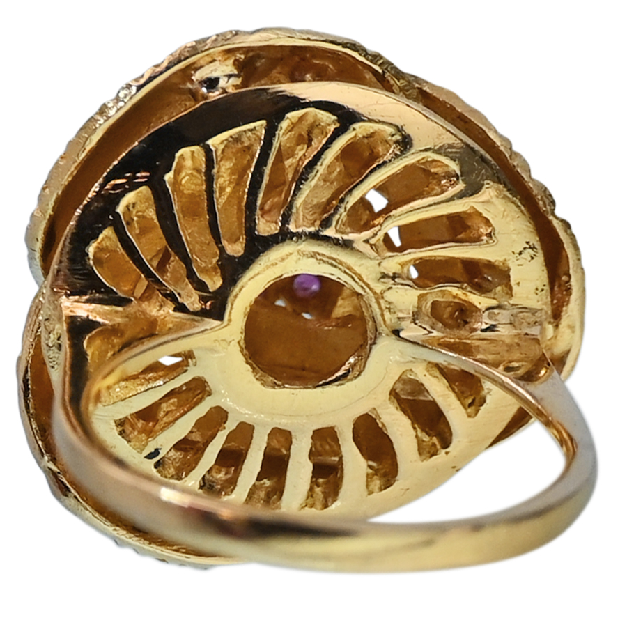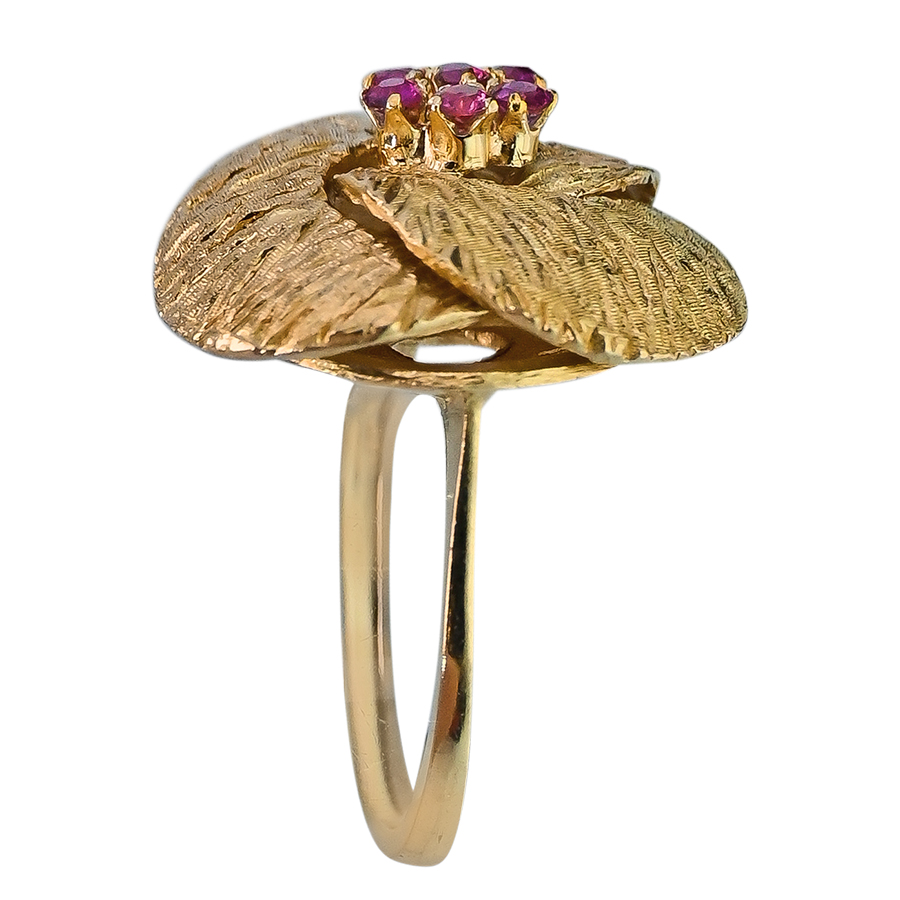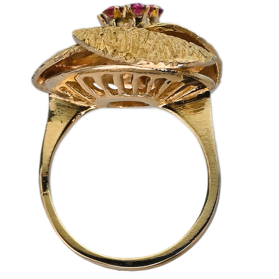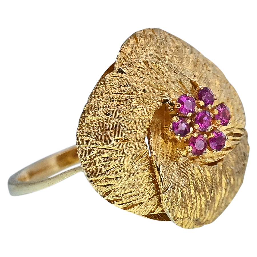 Italian 18K Gold Sculptural Flower Ring with Rubies