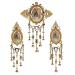 The pieces feature decorative oval centers of low relief black enamelling and taille d’epargne. Taille d’epargne refers to a form of champlevé decoration in which engraved lines of a metal base are filled in with enamel. Rope twists encased in oval surrounds frame and accent the centers. Milgraining, engraving, and scroll forms add further embellishment, while dangles of freely swinging embellished gold rods with ball drops add a dramatic flourish.