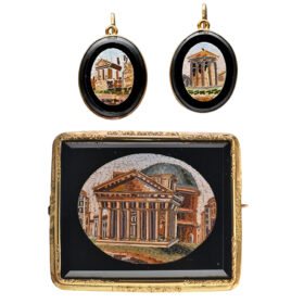 Italian Grand Tour Micro Mosaic Brooch & Earring Suite Depicting Ancient Roman Monuments Details