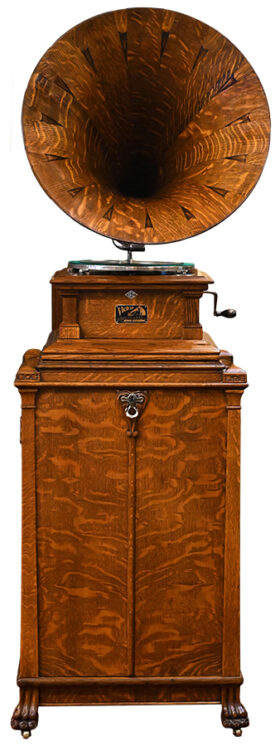 American Victor V 78 RPM Spearpoint Oak Horn Phonograph Details
