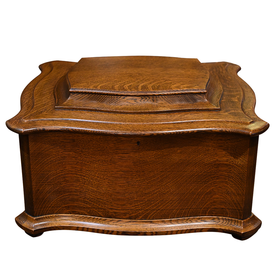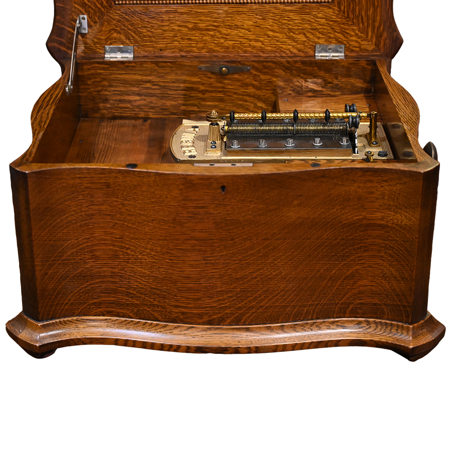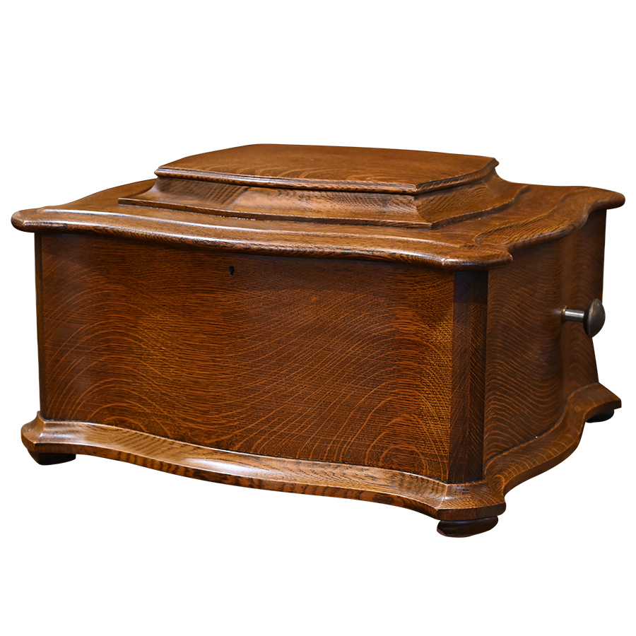 American Regina 15-1/2″ Double Comb Music Box in Serpentine Quarter Sawn Oak Case