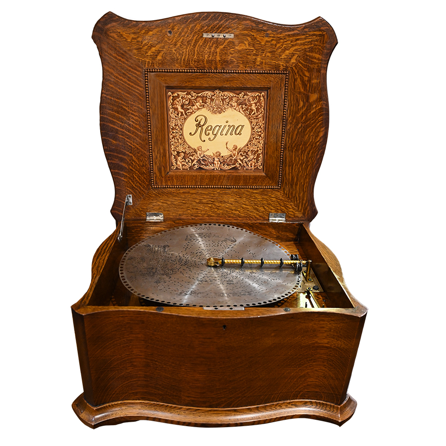 Both a mechanical achievement and a decorative centerpiece, this Regina music box captures a moment when music, design, and engineering converged to bring live performance into the home with elegance and charm.