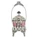 This charming sugar spooner is beautifully crafted and the perfect addition to any tablescape. This exquisite set features a stunning cranberry glass bowl swirled with white that will add a pop of color. The bowl is perfectly sized to hold sugar, and the set survives with 12 spoons, conveniently hung around the edge for each person to use their own, making it the perfect accessory for any coffee or tea service. The silver-plated frame complements the glass bowl perfectly, with delicate scrollwork detail adding a touch of elegance to the set.
