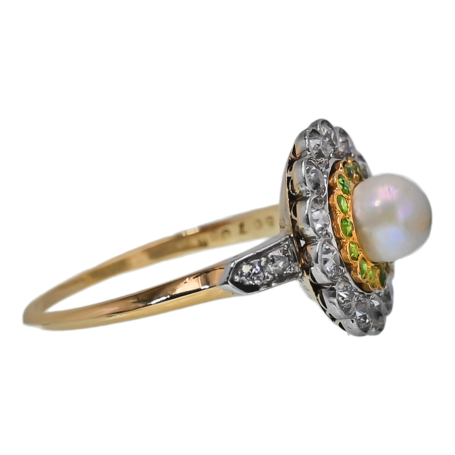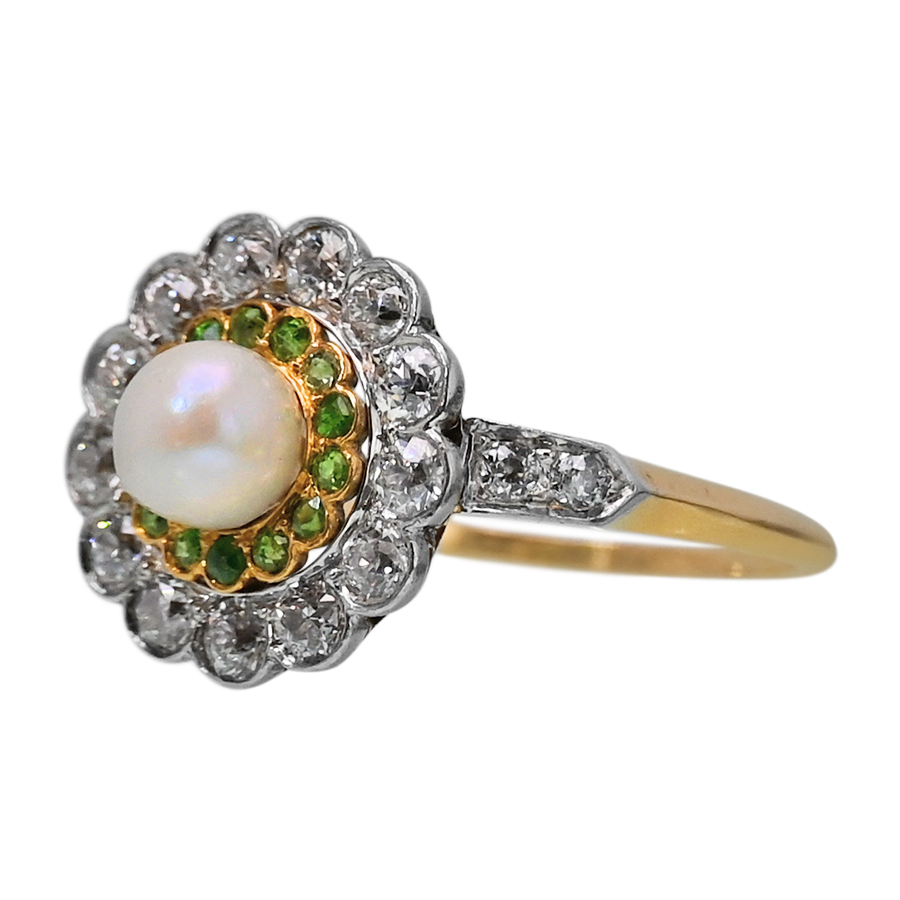 Edwardian Pearl, Diamond & Green Garnet Ring