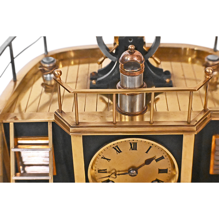 Combining fine bronze craftsmanship, animated mechanical elements, and a charming maritime theme, this French deck clock is both a functional timepiece and a distinctive decorative object.