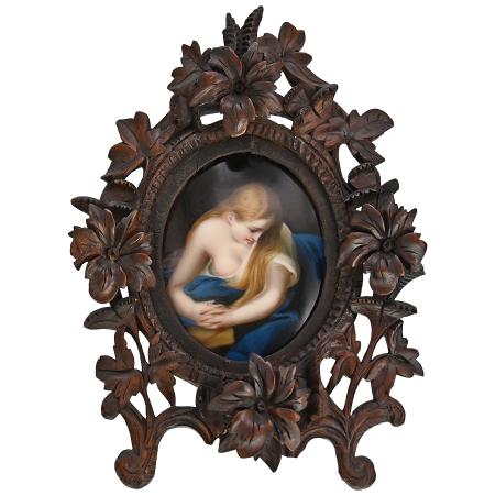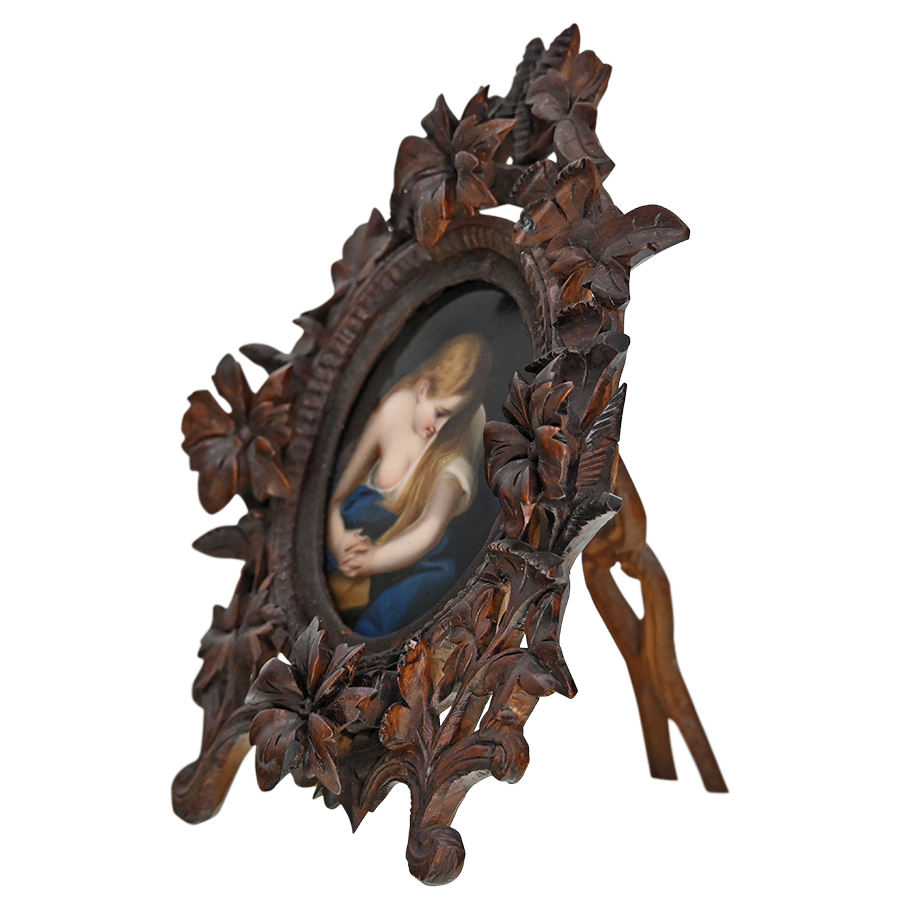 German Hand Carved Easel Back Frame with Porcelain Portrait