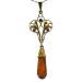 This Madeira citrine and sapphire lavalier necklace capture the distinctive charm and sinuous natural forms of the Art Nouveau period. A 4.25-carat briolette cut Madeira citrine dangles from the necklace, displaying a luxurious golden hue. The 18K yellow gold openwork setting artfully takes on the resemblance of lilies, accentuated with deep blue sapphires. This pendant rests on an 18-inch length chain.