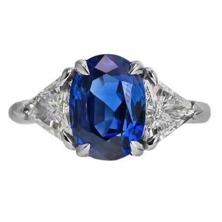 Platinum Oval Sapphire and Trillion Diamond Ring, GIA Certified 4.78-Carats