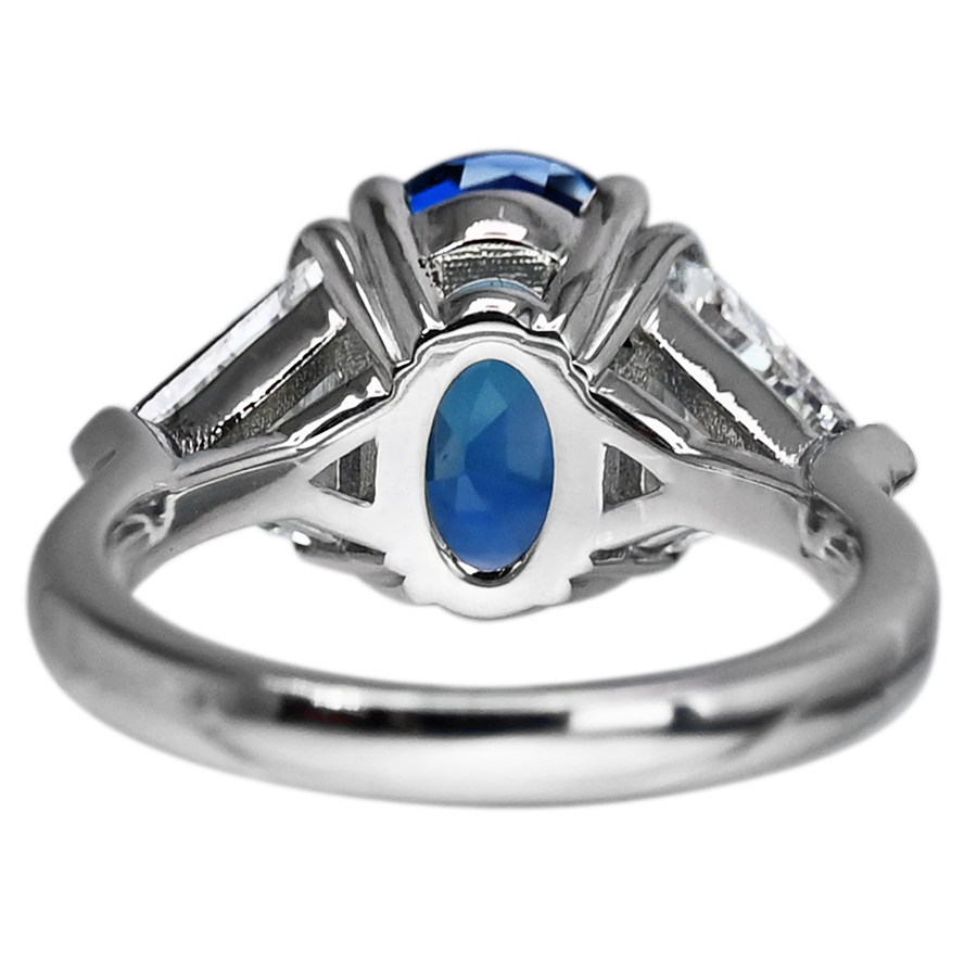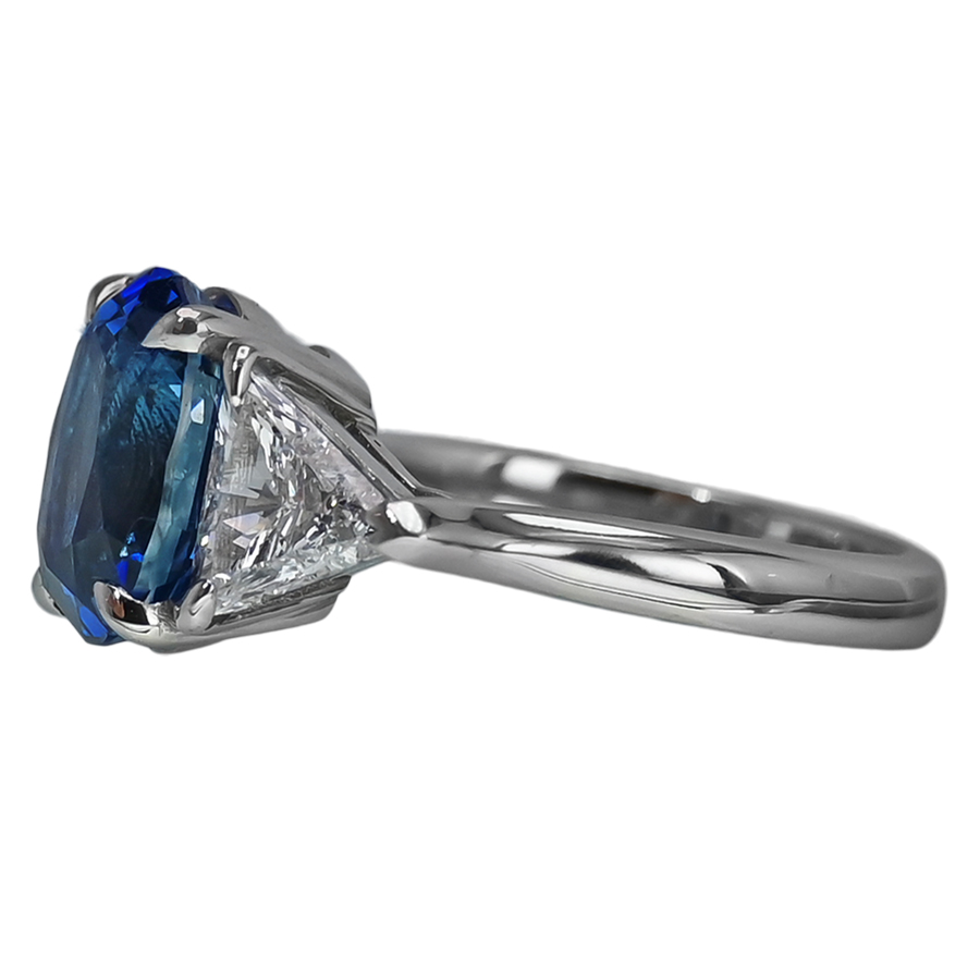 Platinum Oval Sapphire and Trillion Diamond Ring, GIA Certified 4.78-Carats