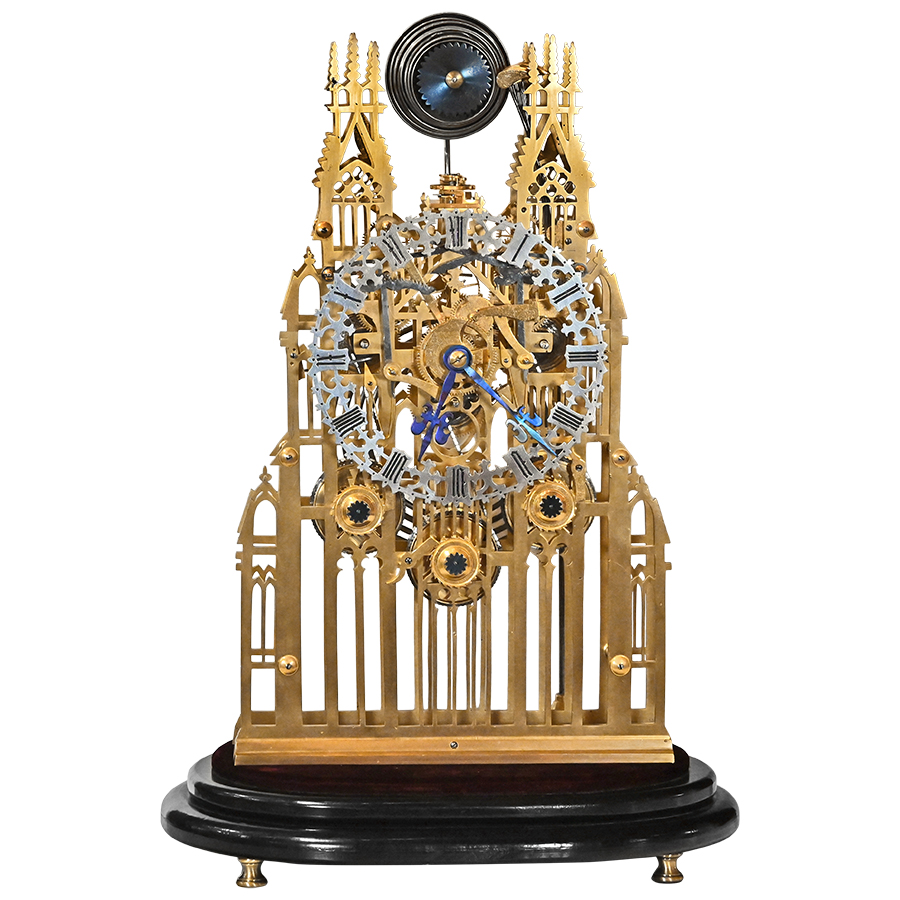 The Evans family firm of Handsworth, Birmingham, was celebrated for producing some of the finest skeleton clocks of the 19th century. Known for their exceptional quality and architectural inspirations, Evans clocks were often modeled after great English cathedrals. Their work reflects the Victorian fascination with both Gothic Revival design and the marvels of mechanical science. Making each example a collector’s treasure of historical and cultural significance.