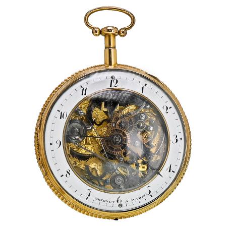 This impressive Swiss 18K yellow gold quarter-hour repeating pocket watch dates to the early 1800s and reflects the technical ingenuity and refined aesthetics of the era. While the porcelain chapter ring bears the name “Breguet,” it is understood to be erroneously signed, a not uncommon homage in the 19th century to the celebrated Parisian master whose innovations shaped the course of fine watchmaking.