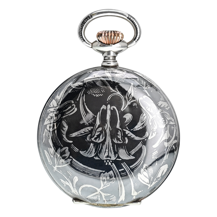 Swiss Hebdomas 8-Day Pocket Watch with Niello Floral Case