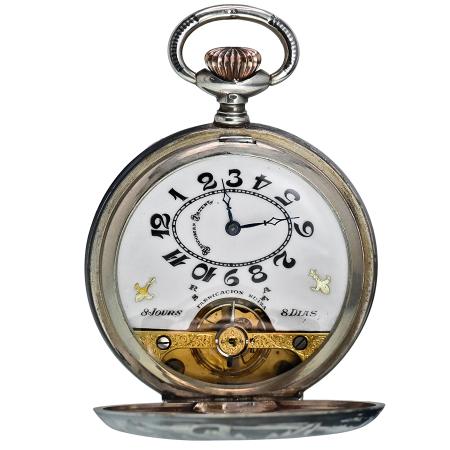 A beautiful union of artistry and engineering, this early 20th-century Swiss Hebdomas 8-day pocket watch captures the refinement of the Art Deco era. Featuring a remarkable eight-day power reserve, the watch is a technical marvel that allows an entire week of operation from a single winding.